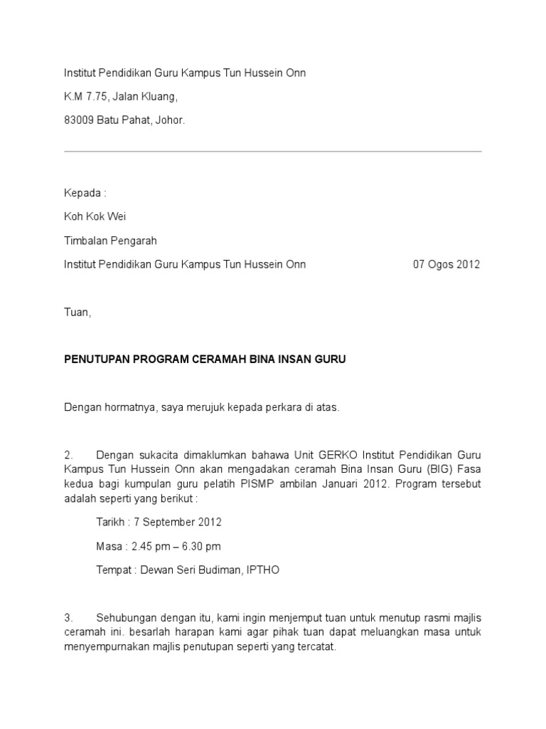 Surat Jemputan Majlis Penutupan Pdf